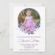 Elegante 4.º convite para o aniversário Foto Boho Vintagem roxa