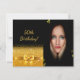 Convite de festas elegante, clássico, glamouroso e feminino. Uma fita e um arco dourados com brilho e brilho de ouro, um pouco de brilho e luxo para um aniversário. Fundo preto. Com o texto: 50º Aniversário! na frente. Modelo para sua foto. Adicione os detalhes do evento no verso.