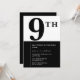 Elegante convite para o 9º aniversário Black Chic Modern calliografia tipografia clássica elegante rapaz