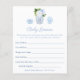 Jogo de chá de fraldas "Bebês Convidados" [escreva previsões para a data de nascimento, altura e peso do bebê, etc] num tema elegante de jardim azul e branco. Todo o texto é totalmente personalizável para suas necessidades.