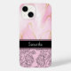 Comunique-se com estilo com esta linda capa de iPhone que apresenta um design moderno de ágata rosa e dourado com toques de brilho, um padrão clássico de paisley e um nome personalizável. Este design é elegante e feminino, e irá agradar a mulheres de todas as idades. Modifique o nome para criar um presente único para mulheres.