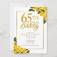 Comemore um aniversário de 65 anos em estilo com este elegante modelo de convite de aniversário de rosa amarelo-rosa. Com rosas amarelas vibrantes, um design de ouro inspirado em brilho e uma elegante estrutura de ouro, este convite é perfeito para fazer qualquer especial extra de aniversário de marco. Totalmente personalizável, você pode facilmente editar detalhes como nome, data, hora, local e RSVP para criar um toque personalizado. Este design exumenta sofisticação e charme, fazer que seja uma escolha de destaque para o seu evento.