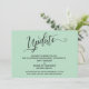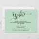 A distinção deste conjunto se deve à fonte de texto elaborada e giratória usada para as frases de destaque. Caso você precise informar aos seus convidados que o seu casamento foi cancelado, este cartão oferece uma opção elegante. Nesta peça, a fonte de caligrafia foi usada para criar um gráfico que representa a palavra "Atualização". Use os campos do modelo para adicionar seus detalhes pessoais e tornar este design único. O fundo pode ser alterado para qualquer cor que você preferir. Entre em contato para qualquer solicitação especial ou para assistência de personalização. // 98 //