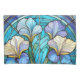 O travesseiro colorido Art Nouveau impresso com um vidro colorido parece um padrão botânico parecido com risos em tons de roxo lacrimogêneo, azul e pálido.