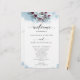 Programa de Casamento Elegante com delicado fundo azul de coloração aquosa e belo elemento floral com flores e folhagem em azul, marinho, burgundy, roxo, magenta e vermelho. Detalhes modernos da caligrafia manuscrita. Capacidade de fazer alterações e ajustes de texto selecionando "Editar usando a ferramenta design". Frente com detalhes da cerimônia de casamento, volte com nomes de festa de casamento e obrigado que envie para seus convidados. Sentimento moderno elegante e romântico. Parte de nossa coleção "Celestial Blooms" com uma variedade de produtos de coordenação disponíveis. Visite a coleção inteira em: https://www.zazzle.com/collections/celestial_blooms_collection-119261583652803465