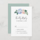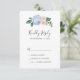 Este elegante cartão RSVP branco azul de hydrangea é perfeito para um casamento de primavera ou verão. O clássico design floral apresenta faixas de cor azul-d-água de pó macio, acentuadas com flores cor-de-rosa e folhas verdes, cor-de-rosa e borrado neutro.