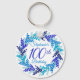 Elegante Blue Wreath 100th Birthday Chaveiro Personalize este elegante chaveiro Blue Wreath com o nome da pessoa que celebra um dia muito especial em sua vida. Um aniversário de 100 anos é um marco especial para celebrar. Você pode personalizar esta chaveiro com seu nome, um pequeno presente para um amigo especial este ano ou dar aos seus convidados como um favor. Planeje sua festa com mais festas de aniversário da nossa loja! Seus amigos ou família amarão uma elegante festa de aniversário azul!