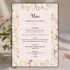 Apresentando nosso encantador Elegante Boho Wildflower Menu Casamento que captura romance e natureza. Com delicadas cores aquáticas, flores silvestres e borboletas, o design exude o charme cômico. Matizes pastéis suaves criam uma paleta calorosa, enquanto a escrita elegante convida convidados para uma celebração amorosa em um cenário sereno e boêmico. Ideal para casais que apreciam a simplicidade e elegância da natureza, este menu define o tom para uma celebração memorável.