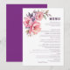 Aprecie seus convidados com nosso Elegante Menu Casamento de Penas Roxas. Este belo design, com delicado crescimento de pedras em matizes roxas ricas, adiciona um toque de sofisticação à sua recepção. Personalize cada detalhe para criar um menu que floresça com o charme e a graça do seu dia especial.