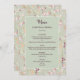 Este cardápio de casamento da borboleta de flor silvestre apresenta um fundo de sábio leve e um belo conjunto de flores silvestres e borboletas coloridas. A design é inspirada pela boêmia, com um sentimento caprichoso e romântico.
