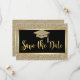 Elegante tampão graduado com brilho dourado em fundo preto.
