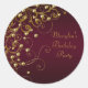 Marrom de vinho tinto borrado elegante e adesivos de espiral dourada. Este belo adesivo burgundy e dourado é facilmente personalizado para o seu evento, simplesmente escolhendo o botão "Personalizar!" para começar a adicionar os detalhes do seu evento, estilo da fonte, tamanho da fonte e cor e texto. Observe que todos os adesivos, cartões e designs de convite que você encontrará no Zazzle são gráficos impressos sem joias reais, arcos, levantados, gravados, ou peças ou peças adicionadas.