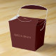 Estas caixas de presente com tipografia elegante em vermelho escuro e rosa pastel são a adição perfeita para qualquer ocasião especial. Com uma combinação de cores sofisticada e design chic, elas adicionam um toque personalizado e elegante ao seu evento, ao mesmo tempo em que guardam lindamente seus presentes atenciosos.