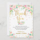 Elegante Cartão de Agradecimento de Chuvinha de Bebê Floral Rosa