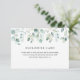 Use este espaço para criar personalizado qualquer cartão de inserção para o seu convite, como um registro de presente, poço de desejos, fundo de lua de mel, livros para o bebê, exposição de chuveiro, etc. Com uma cascata de aquarela de verde de eucalipto.