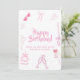 Elegante Cartão de Esboço de Aniversário Cor-de-Ro
