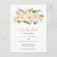 Cartão postal romântico de salvar a data de casamento com flores em aquarela em rosa, rosa poeirento, champanhe e marfim, juntamente com peças de destaque em dourado. O cabeçalho está em uma fonte elegante. Este cartão de salvar a data sem foto é ótimo para um casal que deseja um salvar a data sem fotos e é perfeito para um casamento de primavera ou verão. Estes postais são uma escolha econômica para uma opção amigável ao orçamento.