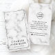 Cartões de visitas elegantes com seu nome e título na frente com uma borda fina ao longo da borda da placa em um fundo de mármore. Campos de modelo personalizáveis para suas informações de contato, mídia social e logotipo no verso. Você pode alterar fontes e cores de fonte, mover e redimensionar elementos com a ferramenta design. Siga-nos no Facebook: @business stationery para mais produtos, notícias, vendas e muito mais.