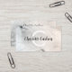 Um elegante design de caligrafia que mostra seu nome e monograma em um fundo de mármore claro. Esta design moderna minimalista é perfeita para qualquer profissional, como uma empresária, designer de interiores, fotógrafo, blogueira, proprietária de butique, proprietária de negócios relacionados à beleza e muito mais. Você pode personalizar a frente com seu nome comercial e monograma, além de incluir seu nome, título, número de telefone, email, endereço de site e contas de mídia social no verso.