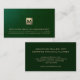 Faça uma impressão duradoura com o nosso Elegante Cartão de visita financeiro. O emblema inicial do monograma de ouro escovado, aliado às informações da sua empresa em tipografia clássica de ouro, é mostrado contra o impressão de couro verde refinado. Nome personalizável, título e informações de contato no emerald sólido. Entregue esse cartão sofisticado a clientes, parceiros e colegas potenciais para transmitir seu profissionalismo e sua expertise.