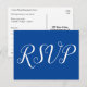 Este elegante e limpo design de cartão postal de RSVP apresenta a mensagem "RSVP" na frente. Também apresenta um formulário personalizado de RSVP no verso para o destinatário preencher, juntamente com um endereço personalizado para onde os cartões RSVP preenchidos devem ser enviados. Cartões RSVP como este podem ser usados para descobrir quem estará presente em uma festa de formatura, chá de noiva, chá de bebê, aniversário de casamento ou outra celebração.