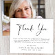 Um elegante e acessível memorial ou cartões de agradecimentos funerário. Este design mínimo apresenta "Obrigado" em uma escrita contemporânea e seu obrigado você envia uma mensagem e ama o nome de alguém em uma simples tipografia moderna. Adicione a foto no verso. Este papel semirbrilhante do orçamento é semelhante em peso ao papel fotográfico. Também está disponível uma versão maior do estoque de cartão tradicional 5x7 (mensagem para o link).