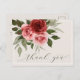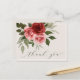 Este design de cartões de agradecimentos de casamento inspirado na vintage apresenta rosas de aquarela impressionantes em tons de vermelho e rosa, aliados a folhagem verde mutada. A paleta de cores suave e neutra complementa casamentos de todas as estações, especialmente para casamentos outono. Ideal para casais que buscam um eterno, romântico e elegante para expressar sua gratidão.