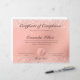 Um maravilhoso certificado de conclusão do estilo luxuoso que os formandos podem pendurar orgulhosamente em seu escritório ou parede de estúdio. Este design apresenta a caligrafia de na moda clássico. Perfeito para academias de beleza, programas de treinamento em tecnologia de lash, escolas de cosmetologia, instrutores e muito mais. Fácil de personalizar o design. Observe que os detalhes do ouro rosa e brilho são simulados.