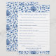 Jogo de chá de panela "Como você conhece a noiva" em um elegante padrão de antiguidade azul e branco. Todo o texto é totalmente personalizável para suas necessidades.