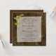 Convite de festa de aniversário de casamento personalizado e elegante, feito em tons de marrom e dourado. Gráficos com fundo marrom e bege, com floreios florais bonitos e borboletas e uma área de texto branca semi-transparente e dourada no meio. Gráficos realistas de um rebite dourado com um laço amarelo dourado decora o canto superior esquerdo da área de texto. O texto em tons de marrom é totalmente personalizável e pronto para ser personalizado para o seu evento de casamento. Convite encantador para casamentos, aniversários, festas de aniversário e muito mais.