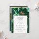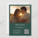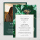 Este convite de casamento com tema floral esmeralda e dourado pode ser personalizado com a sua informação em tipografia moderna e detalhes do casamento no verso, junto com o código QR para o site do casamento e uma foto especial. Desenvolvido por Thisisnotme©