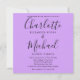 Com nomes elegantes em estilo de assinatura juntamente com a foto escolhida, este convite de casamento elegante pode ser personalizado com os detalhes do seu casamento em tipografia chic num fundo de orquídea lilás lavanda. Você pode personalizar a cor do fundo para combinar com o tema do seu casamento. Concebido por Thisisnotme©