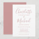 Com nomes de estilo de assinatura, este elegante convite de casamento pode ser personalizado com suas informações em letras rosa poeirentas chiques. Criado por Thisisnotme©