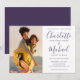 Com sua foto especial e nomes em estilo de assinatura, este convite de casamento elegante em roxo e branco pode ser personalizado com suas informações em letras sofisticadas. Criado por Thisisnotme©