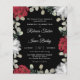Este design de casamento de barato apresenta bonito flores vermelhas e brancas de cor d'água, acentuadas por eucalipto verde sobre fundo preto. Clique no botão personalizar para obter mais flexibilidade na modificação do texto. Variações deste design, diferentes tipos de papel, além de coordenar produtos, estão disponíveis em nosso compro, zazzle.com/store/doodlelulu. Entre em contato conosco se precisar deste design aplicado a um produto específico para criar seu próprio item de correspondência exclusivo! Muito obrigado por ver um DoodleLulu em 2 inseto de junho!