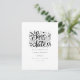 Este lindo cartão postal de anúncio de data com letra preta e branca apresenta folhas de louro e corações. Adicione os detalhes do seu anúncio especial em um texto clássico. O verso tem detalhes adicionais da data, incluindo o seu site de casamento, com o seu endereço de retorno e espaço para o endereço do destinatário.
