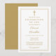 Um convite de funeral de celebração de vida cristã com uma moldura dourada elegante e moderna. Criado por Thisisnotme©