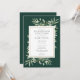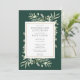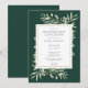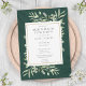 Convite de jantar de noivas elegante com folhas de verde água delicadas sobre um fundo verde esmeralda, podendo ser personalizado com as informações do seu evento de celebração especial. Concebido por Thisisnotme©