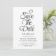 Este convite de noivado apresenta um fundo branco clássico com letra manuscrita "Salve a Data" e tipografia clássica em preto. No verso está a sua foto em quadro completo (também conhecido como "sangrado completo"), que também pode ser removida, se desejado. Este design causa uma primeira impressão elegante e sofisticada para o seu casamento! Fundo, texto e saudação são personalizáveis.