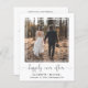 Anúncio de casamento simples e elegante com orçamento acessível ou convite para recepção ou festa pós-casamento. A frente apresenta sua fotografia em uma moldura quadrada recortada, "felizes para sempre" escrito em uma fonte moderna com floreios e seus primeiros nomes, data e local do casamento em tipografia moderna. No verso, você pode personalizar sua mensagem e convite com mais detalhes, criar um código QR vinculado ao seu site de casamento para que os convidados leiam mais informações e respondam online, e adicionar seus nomes em uma fonte com aparência de assinatura.