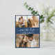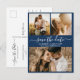 Orçamento Convite de casamento elegante moderno azul marinho e branco com colagem de 3 fotos para anúncio de save the date. Modelo de design minimalista chique com três (3) fotos de casal e tipografia elegante de letra cursiva manuscrita „Save the Date” em branco sobre fundo azul marinho. Se precisar de ajuda ou itens correspondentes, por favor entre em contato.