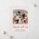 Convite elegante em tom de rosa claro para casamento íntimo ou menor, ou para festa ou recepção pós-casamento. A frente apresenta sua fotografia, "Celebre Conosco" escrito em uma fonte sofisticada e seus primeiros nomes, data e local do casamento em uma tipografia moderna simples. No verso, personalize o anúncio do seu casamento ou casamento íntimo com mais detalhes, adicione um convite para a recepção ou festa e assine seus sobrenomes de casados em uma fonte com estilo de assinatura.