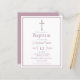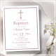 Celebre seu dia especial com nosso elegante convite de batismo rosa-rosado. Este barato apresenta uma bela borda rosa empoeirada e um incrível crucifixo de efeito ouro em fundo branco limpo, perfeito para batismo ou batizado de qualquer bebê.