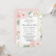 Rosas rosa empoeiradas e peônias cor-de-rosa esmagadas criam uma bonito fronteira com este convite ao serviço memorial. Folhas verdes sábias e sotaques de ouro rosa adicionam um toque especial. O nome da pessoa morta está escrito em um texto tradicional. Todo o texto pode ser facilmente editado para criar uma lembrança pessoal. A parte de trás da celebração do convite à vida é um rosa suave.