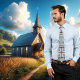 Uma bela gravata artística que apresenta um padrão barroco em elegantes cores azuis da cinza. No padrão é visível um símbolo de cruz cristão.