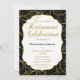 Este clássico convite de festas de aposentadoria apresenta fundo preto com espirais douradas falsas.