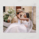 Foto moderna e elegante do orçamento Salve o Cartão de Casamento de Data. O cartão de convite para salvar data inclui tipografia branca e chic e design simples em um fundo branco ao qual você pode adicionar sua fotografia personalizada de noivado.