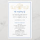 Este elegante design costeiro apresenta uma concha na moda dourada e ondas design com uma borda azul. Personalize com seus detalhes da cerimônia de casamento. Perfeito para praia, verão ou casamentos temáticos náuticos. Design ©Rosalind Moore, Design de Cherry Lane.
