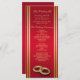 Programas decorativos elegantes e românticos, sofisticados e modernos para Casamentos com um belo fundo de vibrante rubi vermelho com borda dourada e um par de anéis de casamento na moda, um design de classe bonito para o seu dia especial. Ideal para eventos de Primavera e Verão, mas pode ser usado para outono/outono e inverno. Todo o texto é totalmente personalizável para atender às suas necessidades, se você quiser ajudar a personalizar seu produto ou quiser combinar produtos, entre em contato comigo na minha loja e eu terei muito prazer em ajudá-lo.