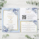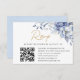 Facilite o planejamento de casamento com esta placa RSVP moderna, com um código QR digitalizável! Projetado para combinar nossa elegante Suíte de Casamento Floral e Azul em Pó Dourado, este cartão de resposta a na moda combina beleza clássica com conveniência digital. Os convidados podem digitalizar rapidamente o código para RSVP on-line, enquanto os florais de aquarela azul suave e os sotaques dourados mantêm uma aparência romântica e luxuosa. Personalize facilmente o texto e faça o upload do seu próprio link ou formulário RSVP através do código QR.